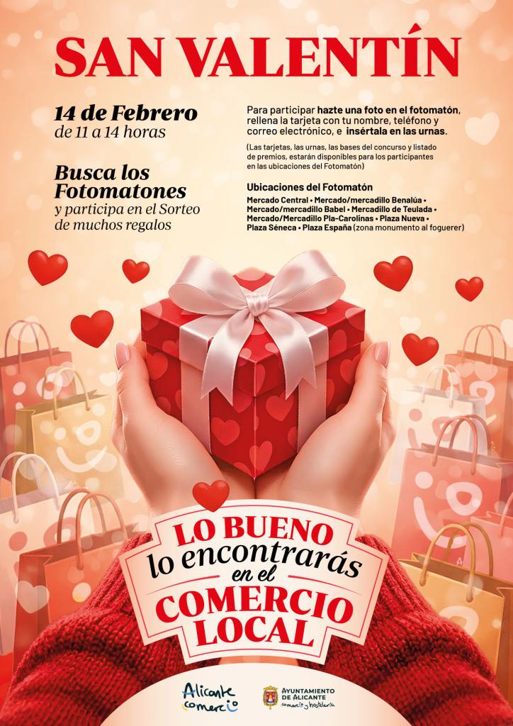 Importante.- Los participantes premiados deberán presentar en las dependencias municipales de la Concejalía de Comercio y Hostelería, un tique de compra de algún comercio minorista o establecimiento hostelero de la ciudad de Alicante, con fecha del 14 de febrero de 2026, condición indispensable para recibir el premio.