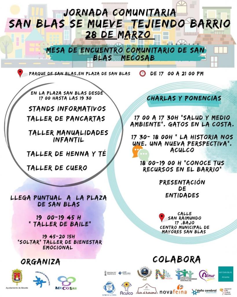 Nos alegra informar que el próximo Viernes 28 de marzo celebramos la Jornada San Blas Se Mueve: Tejiendo Barrio, organizada por la "MECOSAB" Mesa Comunitaria de San Blas.