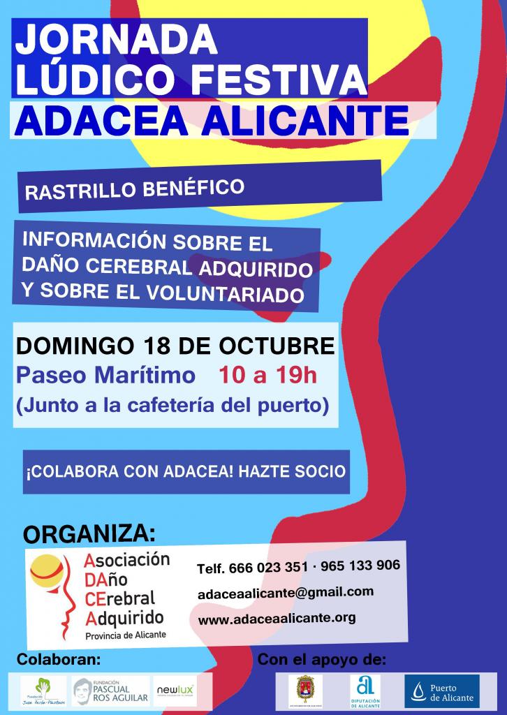 El domingo 18 de Octubre ADACEA celebra un nuevo Rastrillo Benéfico. Desde las 9:00 y hasta las 20:00 podréis encontrarnos en el puerto de Alicante, junto a la cafetería Soho y el Tiovivo. Os invitamos a visitarnos y animar a vuestros familiares y conocidos. Del mismo modo solicitamos vuestra colaboración con la difusión del evento. En nuestro Rastrillo Benéfico podéis adquirir una gran variedad de productos, algunos de ellos elaborados en los talleres de Adacea y además colaborar de manera solidaria con nuestros proyectos y servicios