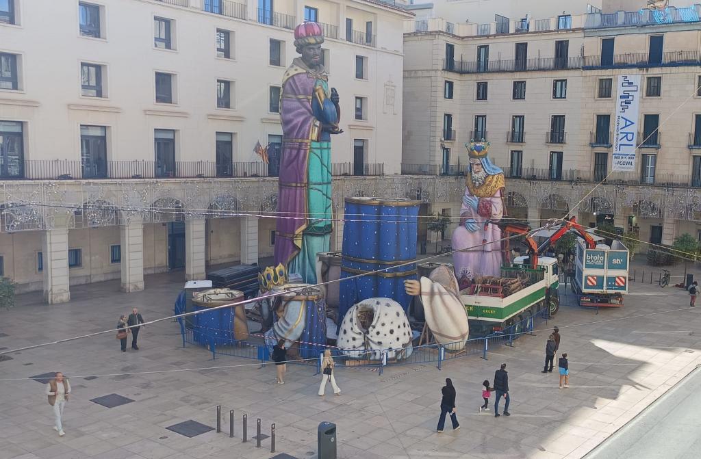 La primera fase del desmontaje del Belén Monumental ha comenzado en la madrugada de este jueves cuando, por medio de una grúa, se han quitado las piezas superiores de las figuras, a excepción de las de dos de los Reyes Magos -Melchor y Baltasar-. Las tareas han proseguido durante este mediodía. Con el conjunto de las figuras, ya sobre el pavimento de la Plaza del Ayuntamiento, será en la madrugada de este viernes cuando acaben estos trabajos en un Nacimiento que se ha vuelto a convertir en uno de los principales atractivos de la Navidad alicantina.