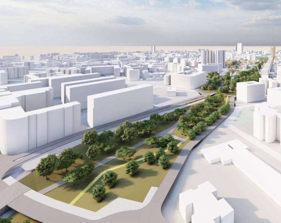 Dicha solución permite, además, generar una continuidad total del parque hasta el centro urbano, alcanzando la plaza de la Estrella, y dar respuesta a las necesidades de los distintos ámbitos de movilidad (ferrocarril, TRAM y autobuses), así como a su interconexión, configurando un gran centro de movilidad plenamente integrado en el contexto urbano.