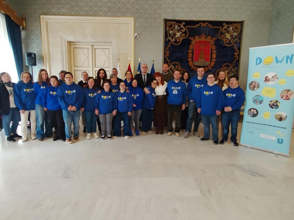 Alicante, 20 de marzo de 2026. El Ayuntamiento de Alicante se ha sumado este viernes a la conmemoración del Día Mundial del Síndrome de Down en un acto celebrado en el Salón Azul, al que han asistido el vicealcalde, Manuel Villar, la concejala de Bienestar Social y Derechos Públicos, Begoña León, y varios miembros de la Corporación municipal, junto a la presidenta de la asociación Down Alicante, María Teresa Rodríguez, y algunos socios. Durante su intervención, León ha resaltado la importancia de “seguir trabajando juntos con el fin de promover la inclusión desde todos los ámbitos de la sociedad” y ha señalado que “nuestro deber como sociedad garantizar que todas las personas, incluidas aquellas con Síndrome de Down, tengan acceso a la educación, el empleo, la atención médica y el apoyo necesario para llevar vidas satisfactorias”.