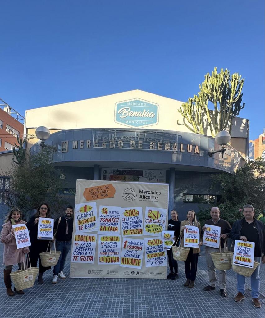 La presentación se ha realizado en el Mercado de Benalúa y junto a la concejala de Comercio el presidente de la asociación de Comerciantes Concesionarios de Mercados Municipales de Alicante, Paco Alemañ, destacó que “la campaña marca la diferencia con un mensaje que suena a casa y a nuestro barrio con los carteles tradicionales de antes diseñados para reforzar la idea de que nosotros los Mercados municipales somos diferentes y singulares y la mejor opción comercial para comprar esta Navidad”.