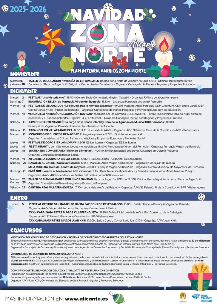 Alicante, 10 de diciembre de 2025. La concejalía de Planes Estratégicos y Proyectos Europeos del Ayuntamiento de Alicante, a través de la Oficina Edusi entre dos castillos, ha organizado una decena de propuestas para todos los públicos esta Navidad con festivales de villancicos, un mercadillo navideño, fiestas infantiles, talleres y una carrera solidaria que se van a desarrollar durante todo el mes de diciembre.