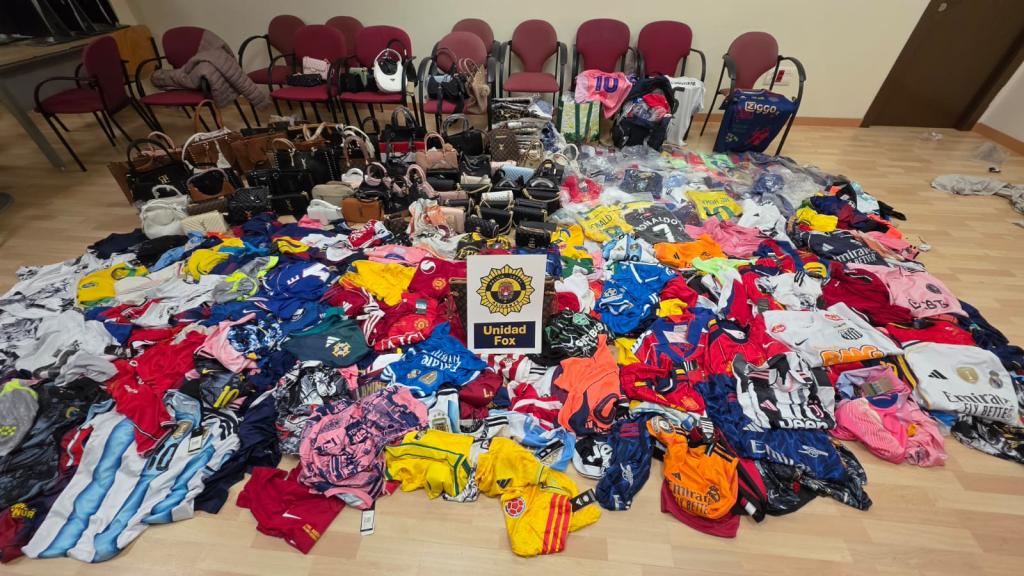Una veintena de agentes de las unidades Fox, Grumai y USR participan en la operación, que se saldó con la incautación de equipaciones deportivas, bolsos y otros artículos