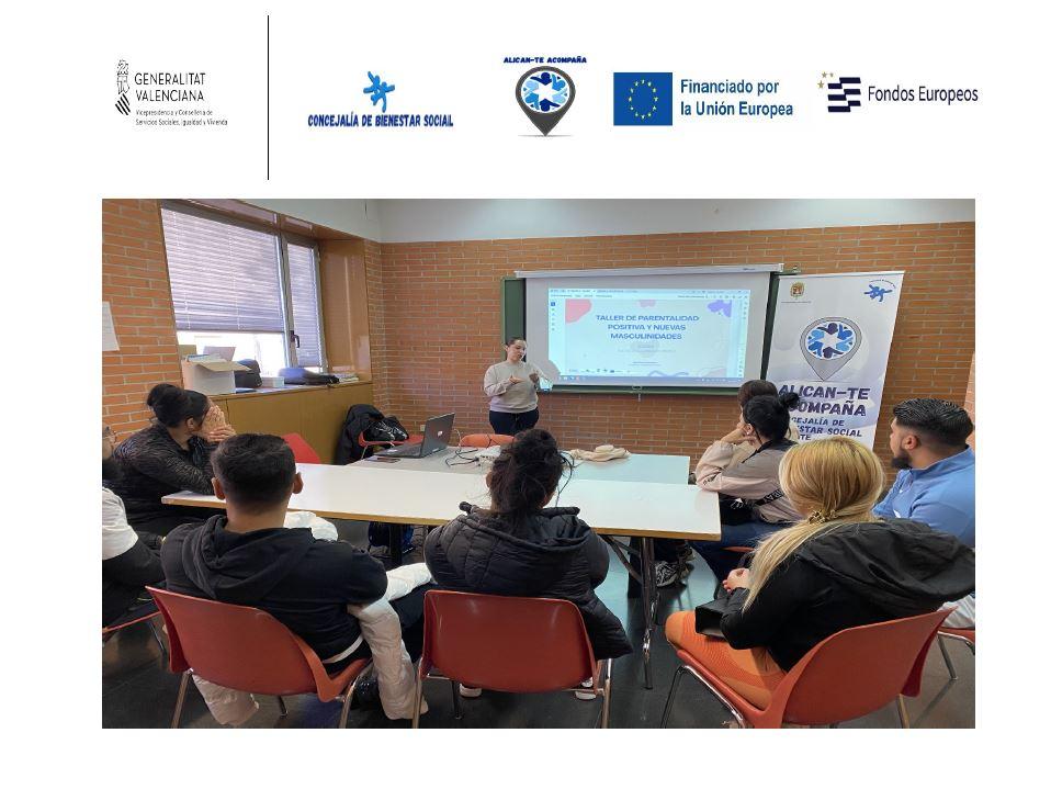 Las personas participantes en los itinerarios de inclusión social del Programa Alican-Te Acompaña de la Zona Norte, han recibido diez sesiones formativas en el marco del Taller de Parentalidad Positiva y Nuevas Masculinidades realizadas en el Centro Social Gastón Castelló, impartido por las promotoras del Departamento de Igualdad de la Concejalía de Bienestar Social.