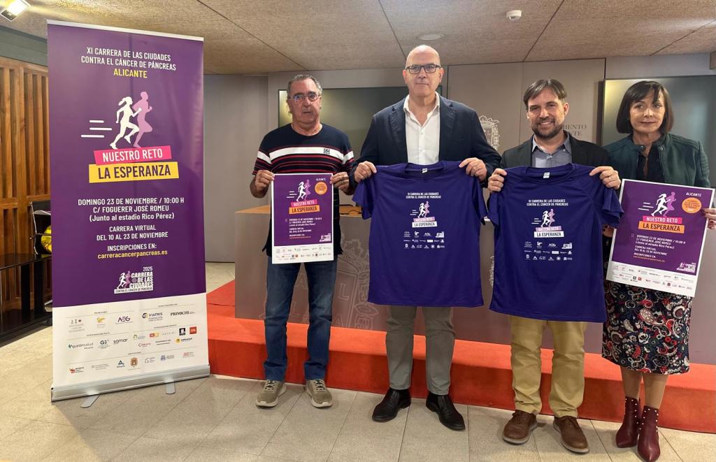 Alicante, 11 de noviembre de 2025.- Más de 2.000 atletas -incluyendo también a practicantes de la marcha nórdica y andarines- dirán ‘no’ al cáncer de páncreas en la Carrera de las Ciudades programada para el domingo 23 de noviembre, bajo el lema ‘Nuestro reto: la esperanza’. La prueba, con carácter popular, se disputará sobre una distancia de 5 kilómetros en un circuito urbano con salida (10 horas) y meta en el estadio de atletismo ‘Joaquín Villar’. Está organizada por el Grupo Brotons y la promueven la Asociación Cáncer de Páncreas (Acanpan), la Asociación Española de Pancreatología (Aespanc) y la Asociación Española de Gastroenterología (Aeg). La fachada del Ayuntamiento de Alicante estará iluminada de color violeta en la noche del jueves 20 de noviembre, coincidiendo con el Día Mundial del Cáncer de Páncreas.