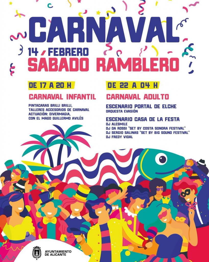 La regidoria de Festes de l'Excm. Ajuntament d'Alacant presenta la programació d'actes del 'Dissabte Rambler' amb motiu del Carnestoltes 2026.